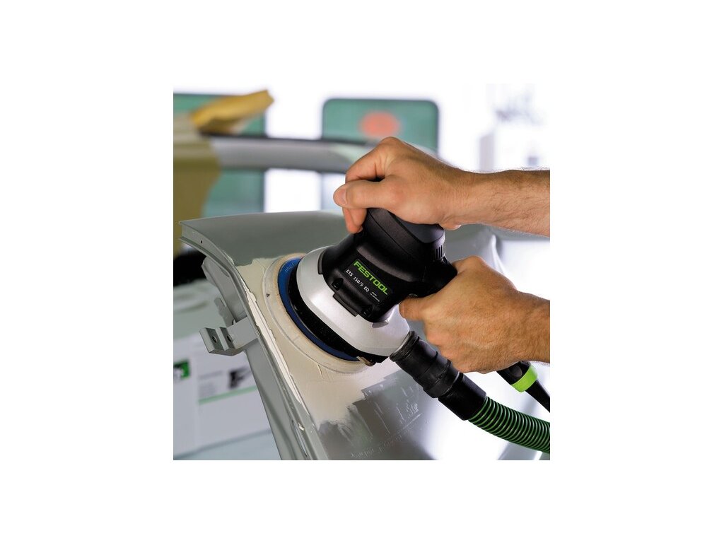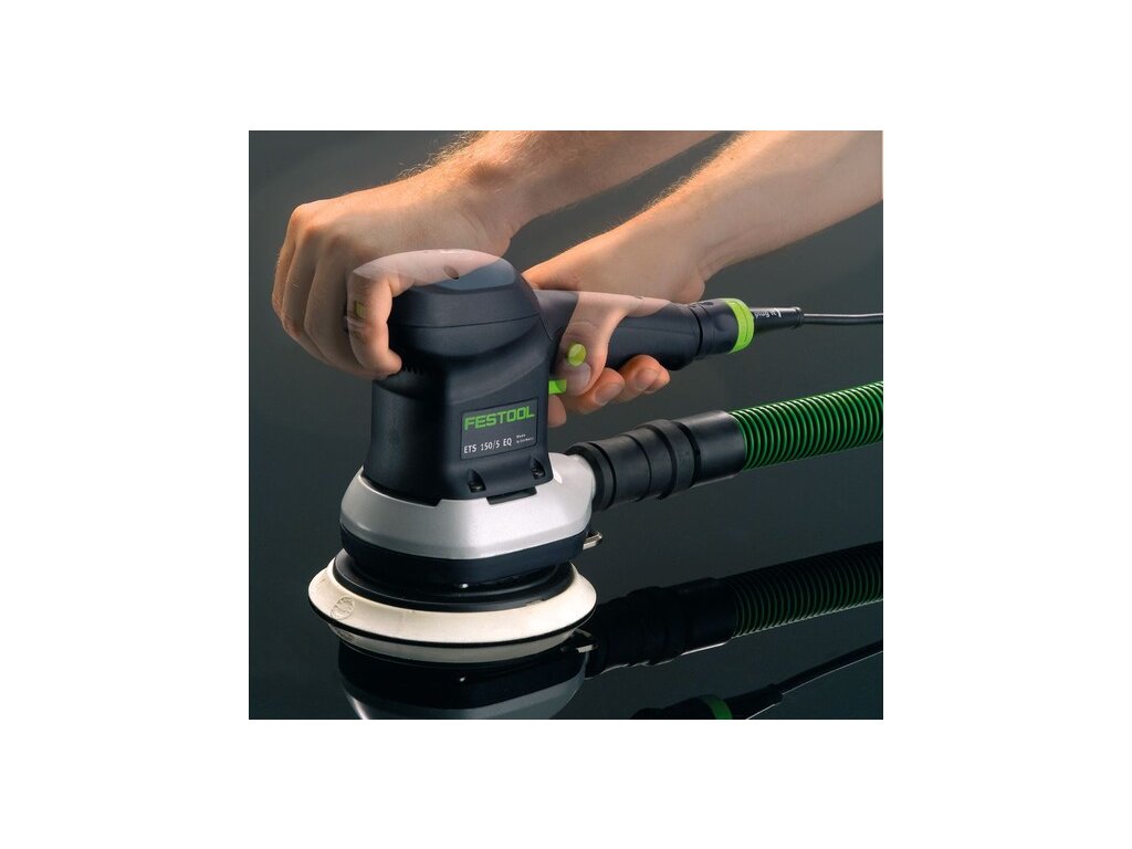 Excentrická brúska ETS 150/5 je ideálna na prípravný výbrus a dosahuje brúsny zdvih 5 mm, čo zaručí najvyššiu kvalitu povrchu pri optimálnom úbere materiálu. Hodí sa na veľké plochy aj na detailné práce – od obrusovania až po prípravný výbrus. Či už ide o vrstvy laku, okenné rámy alebo masívne drevo, pri plošnom brúsení alebo pri prebrusovaní kovových povrchov, tmelov, sadrokartónových dosiek alebo uzlov v rohoch dreva – aj na kritických miestach je excentrická brúska ETS 150/5 vo svojom živle.
