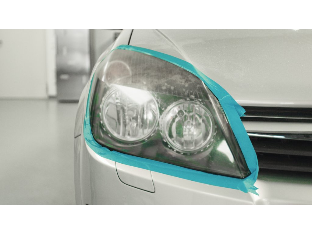 1. Pred leštením oblepte okraje svetlometov páskou a opláchnite čistou vodou.