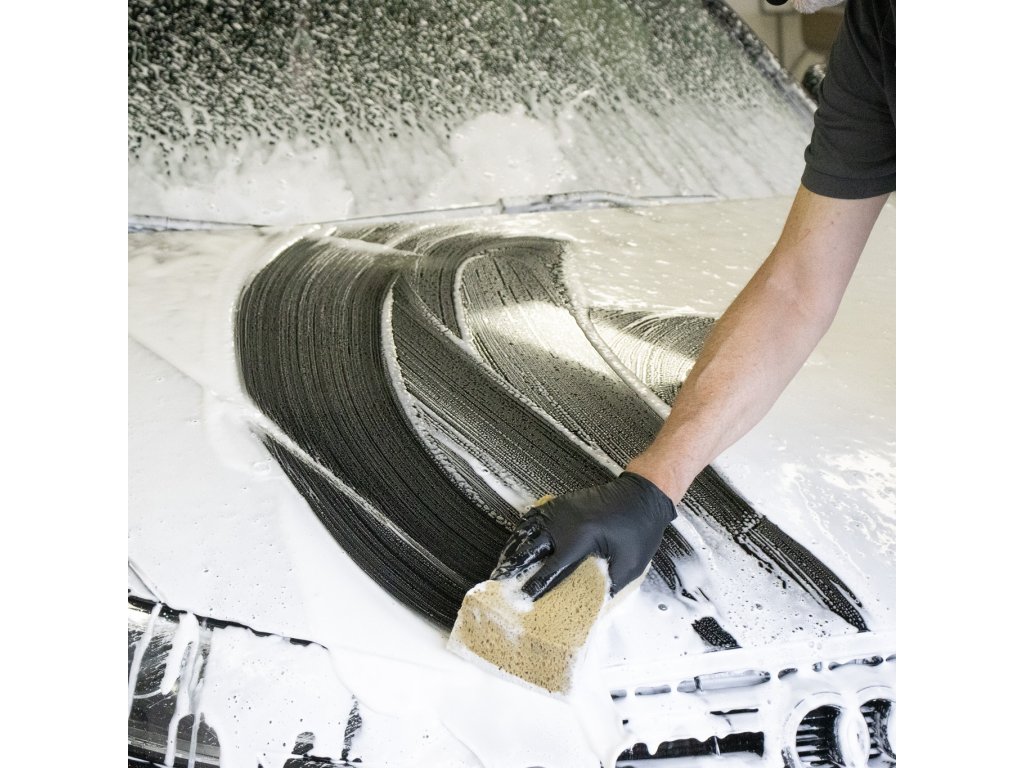 - Predumyté a ešte mokré vozidlo umyte špongiou.