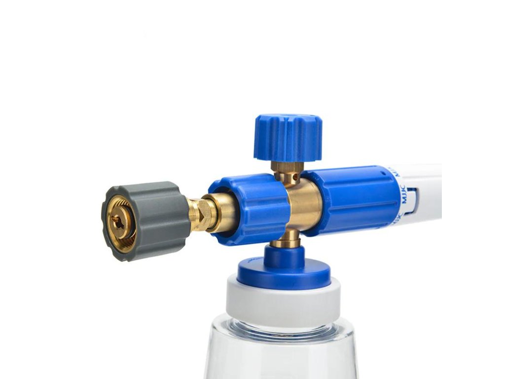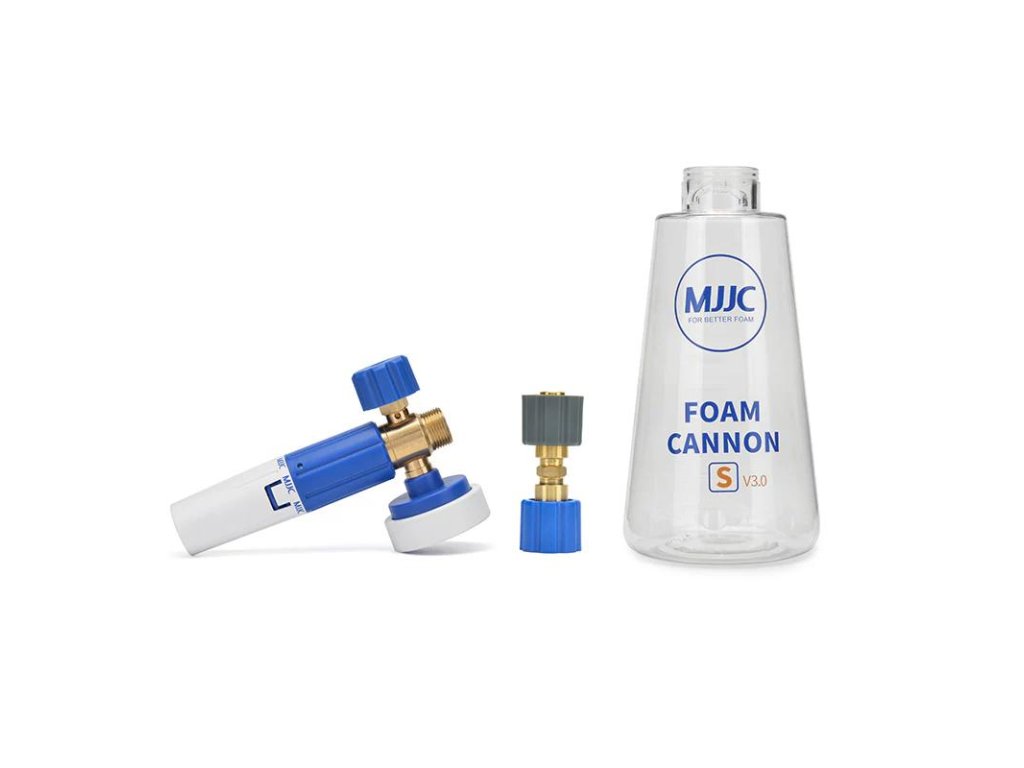 MJJC Foam Cannon S V3.0 mení spôsob umývania áut a je nevyhnutné pre bezpečné umývanie! Tento napeňovač funguje podľa Venturiho efektu, kde sa čistiaci prostriedok nasáva z 1-litrovej fľaše. V kombinácii s dobrou aktívnou penou ľahko vytvoríte hrubú vrstvu peny, ktorá pôsobí na povrchu po dlhú dobu.