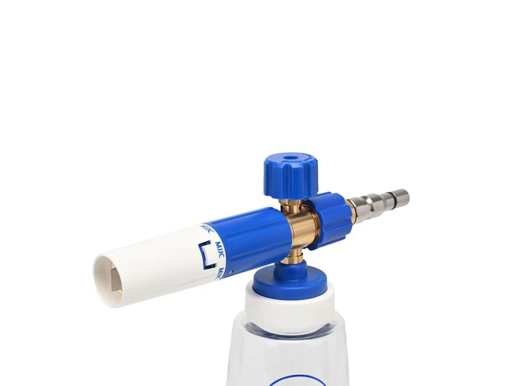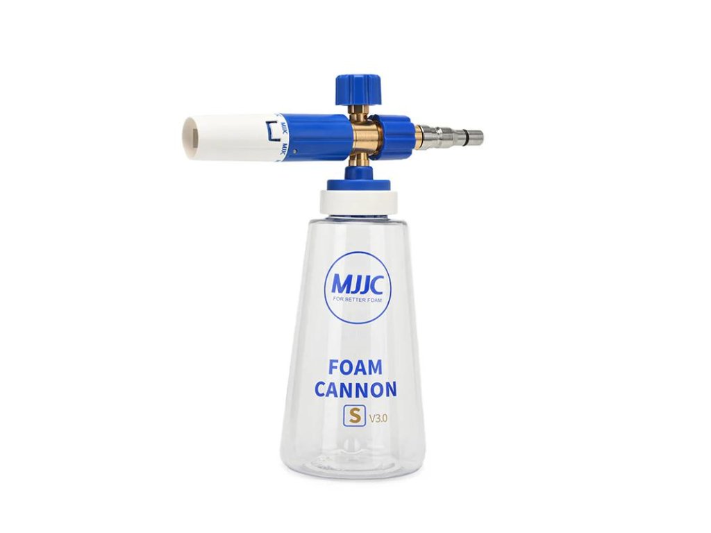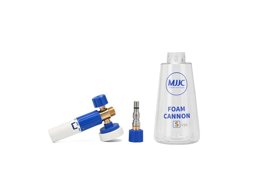 MJJC Foam Cannon S V3.0 mení spôsob umývania áut a je nevyhnutné pre bezpečné umývanie! Tento napeňovač funguje podľa Venturiho efektu, kde sa čistiaci prostriedok nasáva z 1-litrovej fľaše. V kombinácii s dobrou aktívnou penou ľahko vytvoríte hrubú vrstvu peny, ktorá pôsobí na povrchu po dlhú dobu.