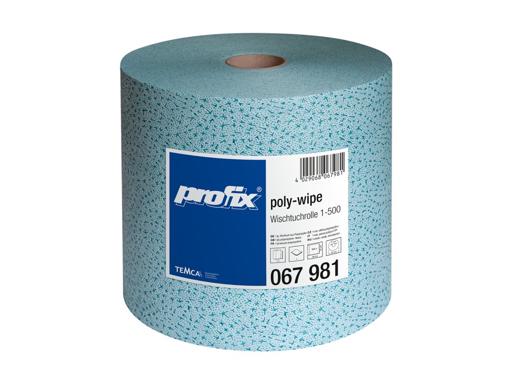 Profix poly-wipe je priemyselná čistiaca utierka určená pre náročné prevádzkové podmienky. Nevláknivá utierka na viac násobné použitie; odolná voči riedidlám; čistiacim prostriedkom a chemikáliam. Je určená na odstraňovanie špiny a škvŕn z povrchov; strojov alebo nástrojov. Pevná za mokra; vhodná pre automobilový priemysel; lakovne; tlačiarne. Rozmery: 32 x 36 cm; 500 útržkov; 180 m.