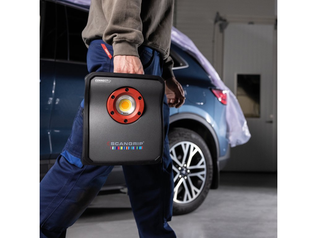 Pracovné svetlo MULTIMATCH 3 CONNECT poskytuje 3000 lúmenov a je ideálne na osvetlenie veľkých plôch počas úloh, ako je leštenie, maľovanie, lakovanie, čistenie a zladenie farieb.