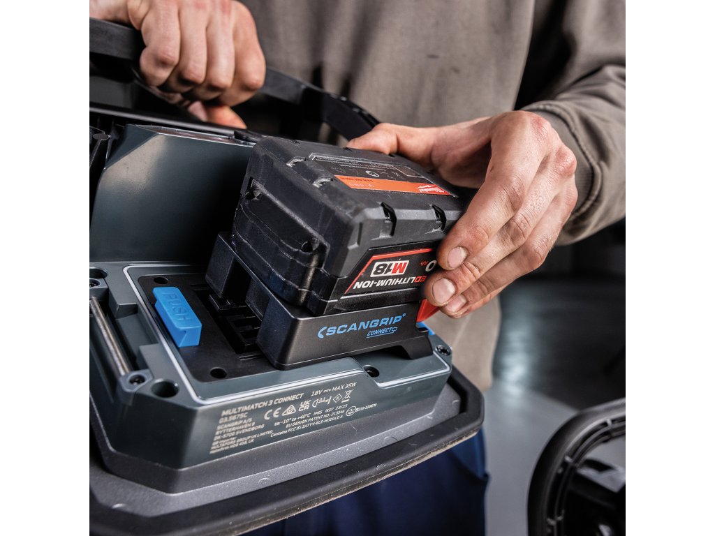 Ak by ste chceli použiť vymeniteľný akumulátor, MULTIMATCH 3 CONNECT je kompatibilný aj so všetkými akumulátormi 18 V/20 V popredných značiek elektrického náradia pomocou vhodného konektora SCANGRIP CONNECTOR.